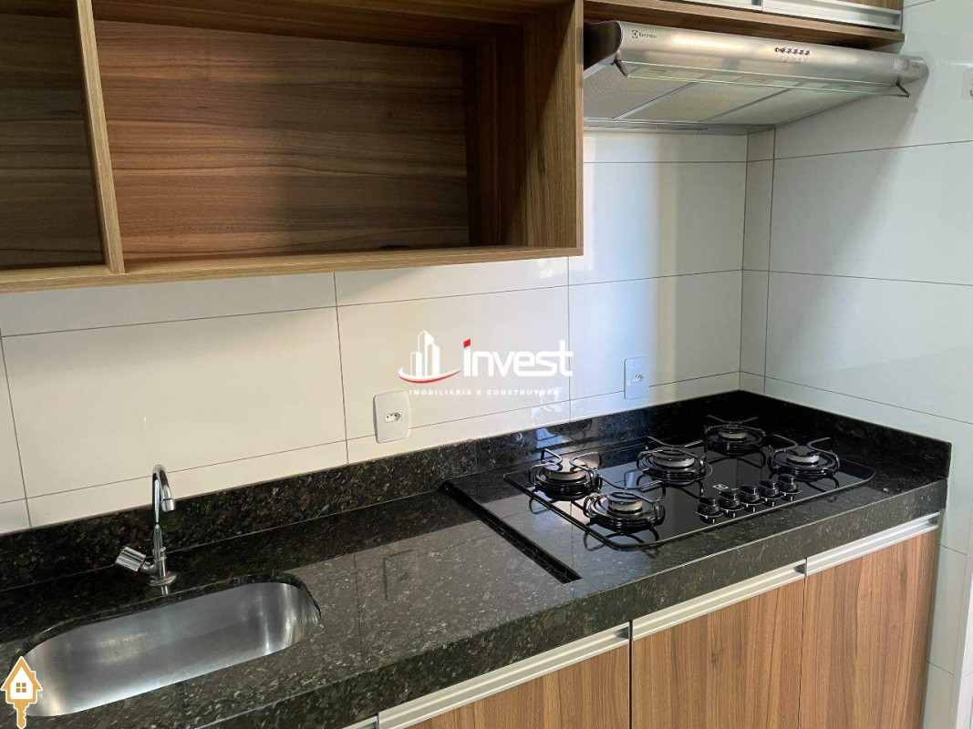 Cozinha americana com fogão cooktop e coifa