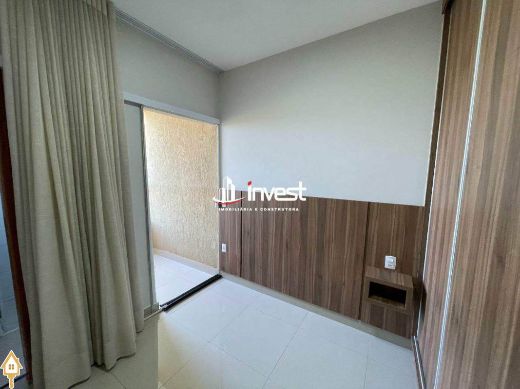 2 quartos sendo uma suíte com armários e cortinas e sacada
