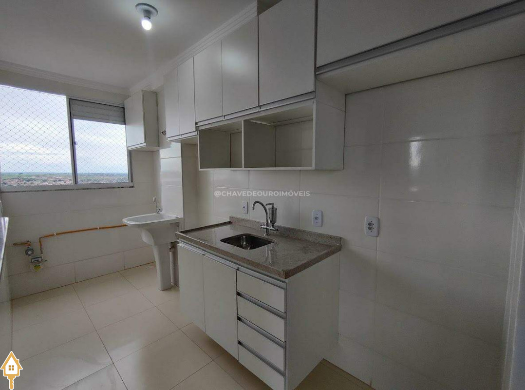Apartamento para locação em Uberaba, no Bairro Manoel Mendes de 02 quartos com armários, banheiro com armário e box, sala, cozinha planejada, área de serviço e uma vaga de garagem descoberta. Quartos e sala com ventilador de teto. Condomínio com piscina, salão de festas, área gourmet, playground e portaria 24hs.