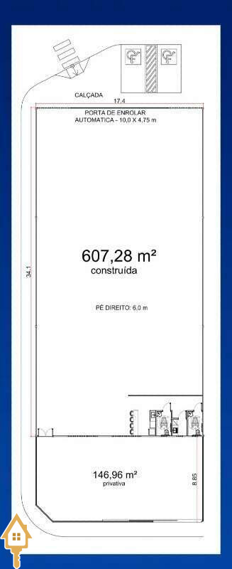 - Área privativa aberta de 146,96 m² nos fundos (própria para carga e descarga, implantação de sistema de docas);