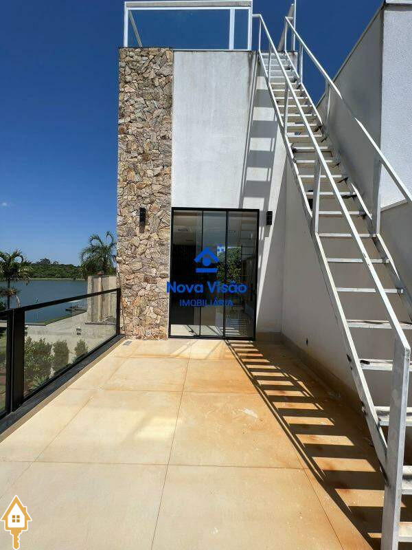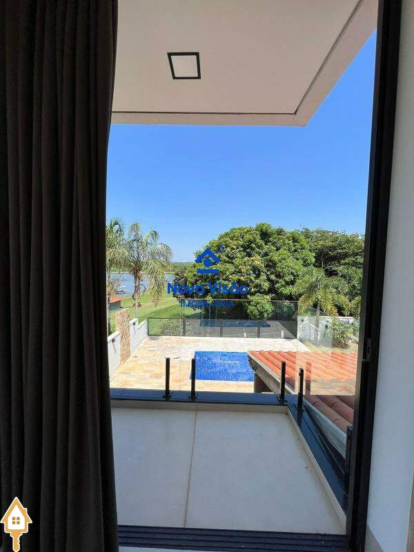 Imóvel excepcional em condomínio fechado. Composto por sala ampla com escada E mezanino, integrada com cozinha com marcenaria completa, cooktop, sugar, micro-ondas e forno elétrico. Possui lavabo, três suítes sendo todas com marcenaria completa e uma sendo suíte master com closet e hidromassagem . No andar superior possui sala de TV com sacada para o rio e escada para mirante no terceiro andar. Imóvel Possui área gourmet com churrasqueira em pedra, balcão com armários, jardim e piscina com vista ampla para o lago . Possui lavanderia com armários e garagem coberta para quatro carros sendo duas descobertas.