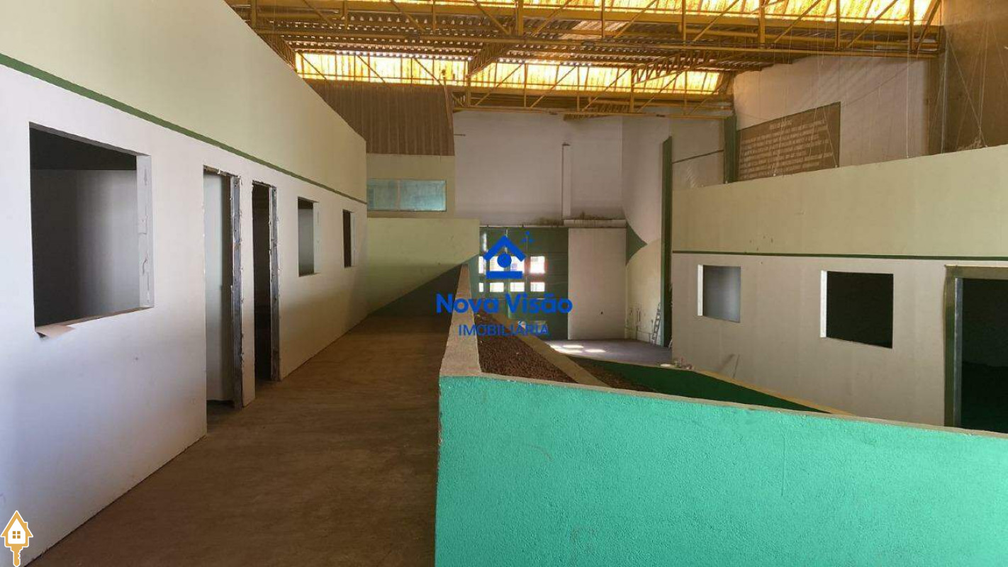 Galpão de dois andares, na parte superior, duas salas, banheiro, copa e recepção, na parte térrea recepção, banheiros feminino, masculino e deficiente, copa e banheiro interno.