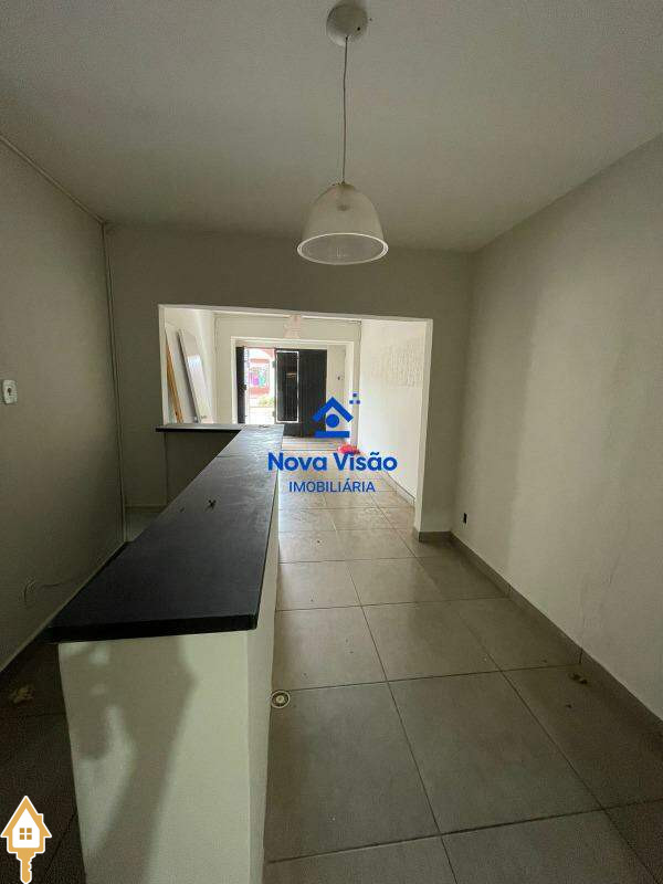 Ponto comercial com balcão, banheiro social, e cozinha.