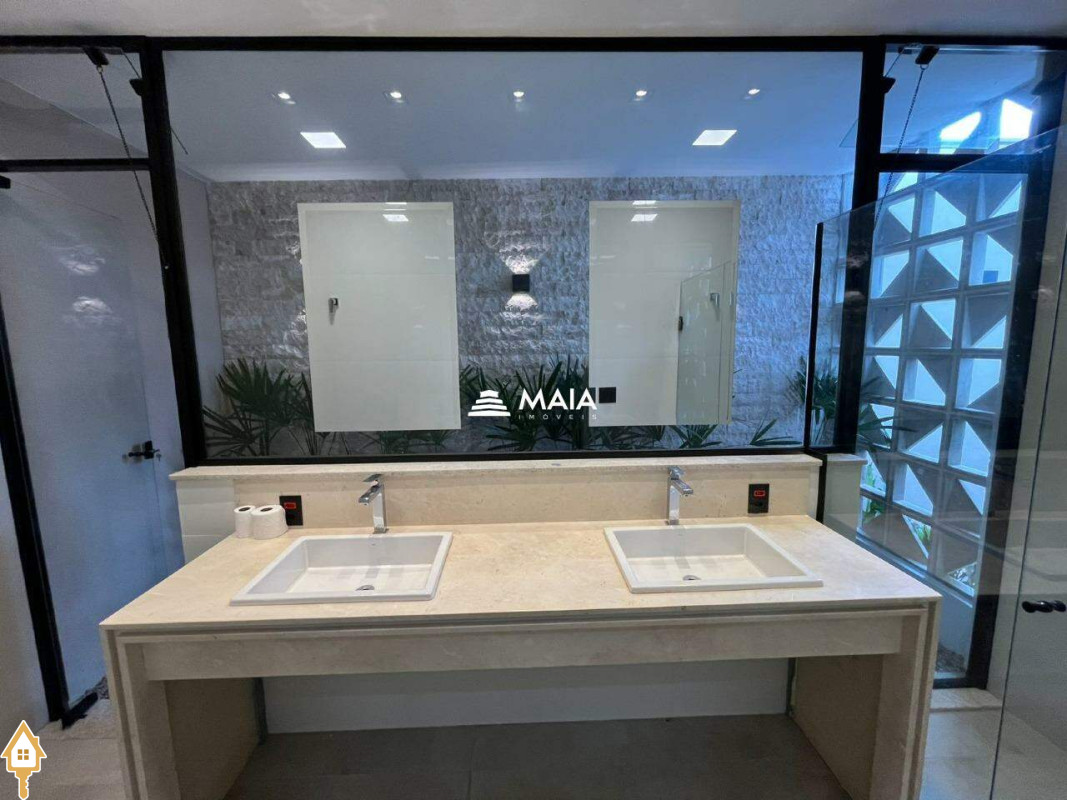 - Suíte master com banheiro espaçoso, equipado com duas cubas e jardim interno;