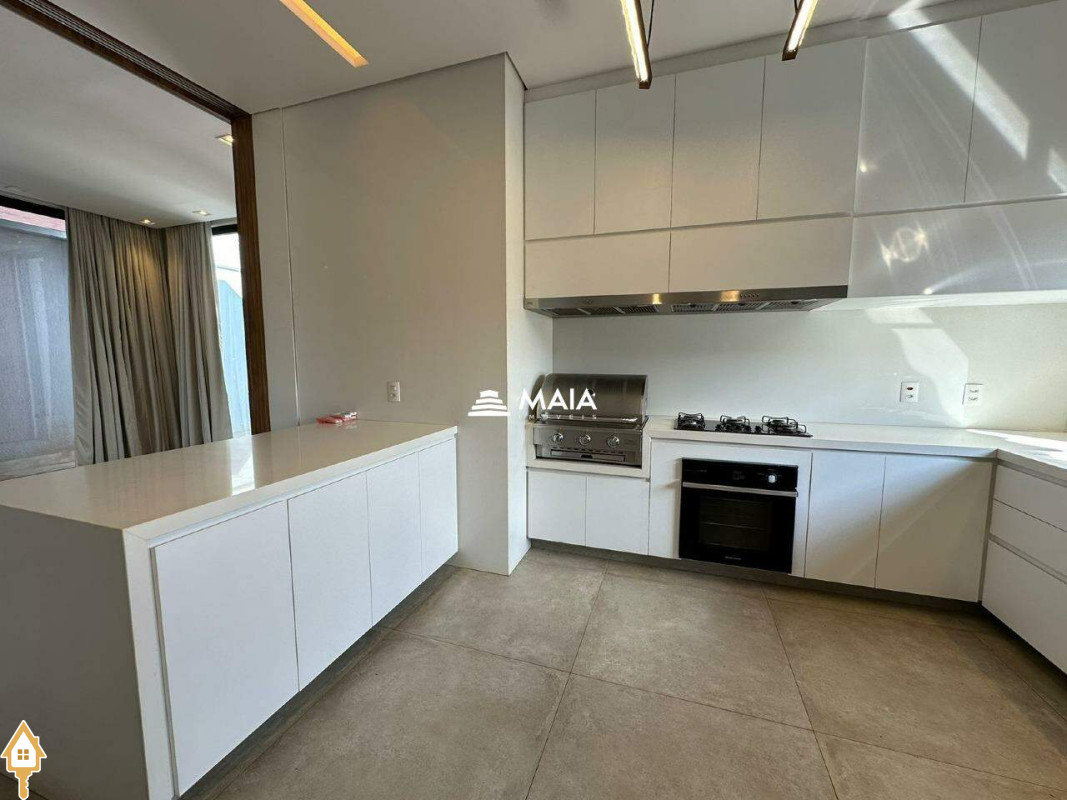 - Cozinha planejada com fogão e churrasqueira;