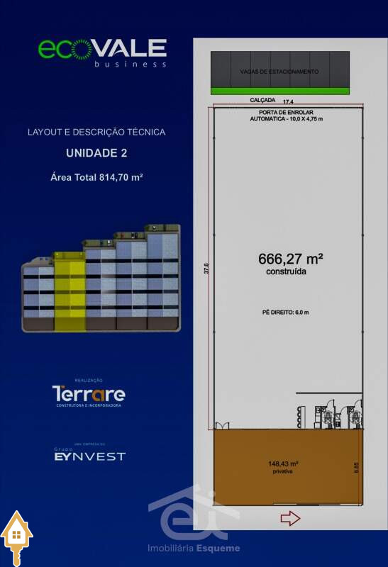 - Pé-direito: 6,0 metros