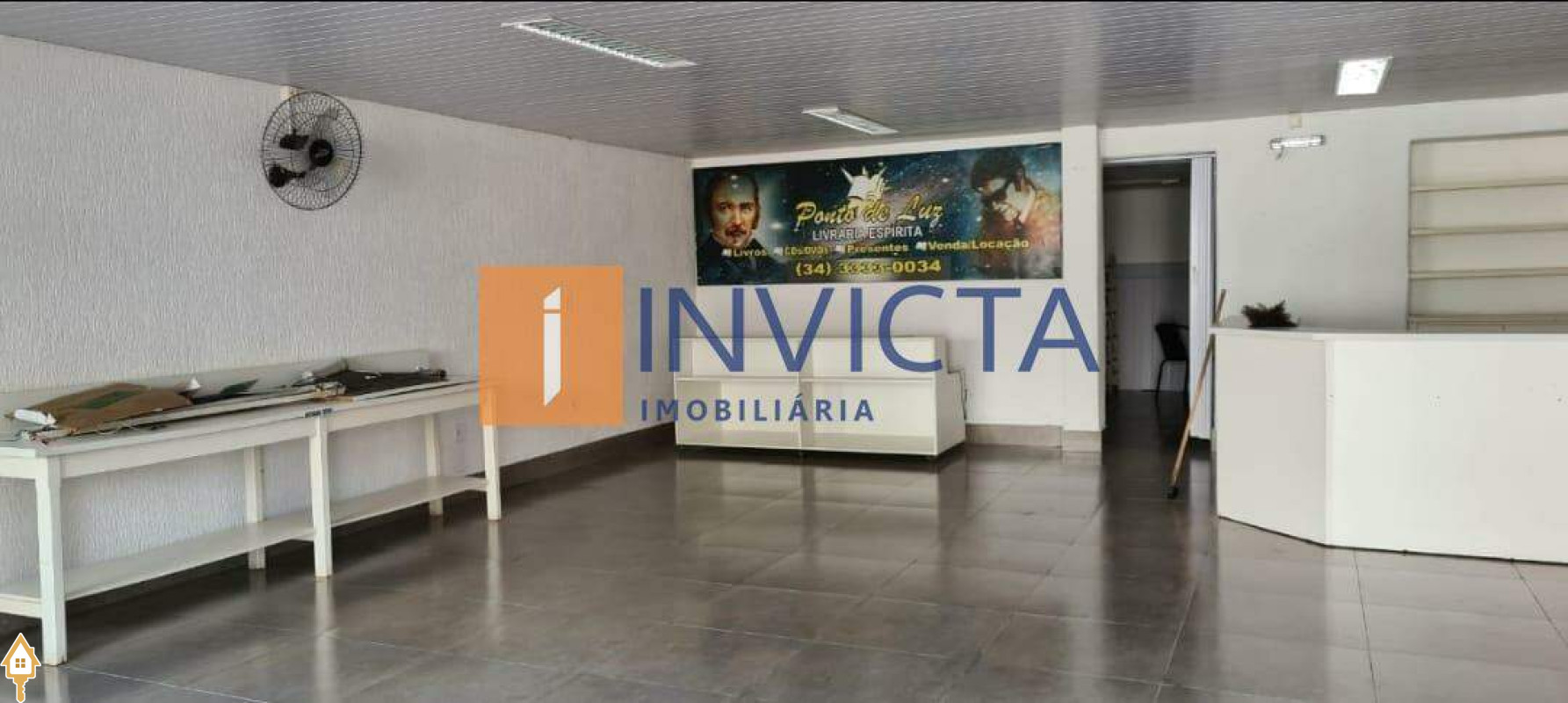 Salão, escritório, cozinha e banheiro