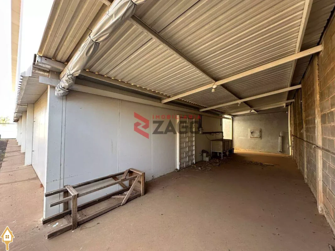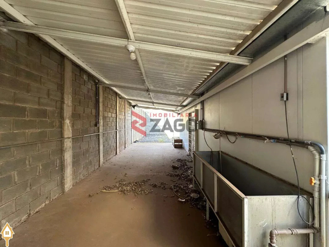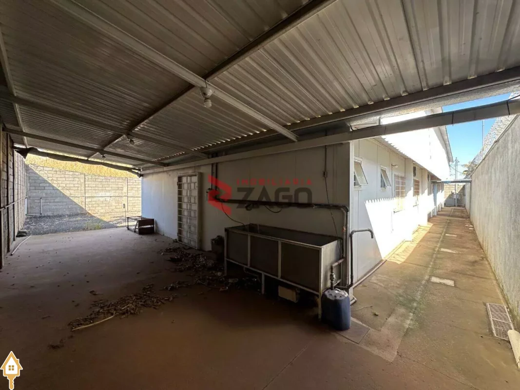Área coberta ao fundo com grande tanque de inox, retangular, com