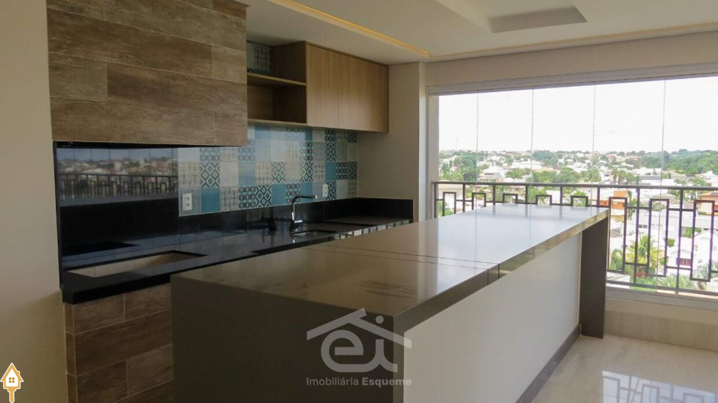 - Varanda gourmet em “L” com churrasqueira