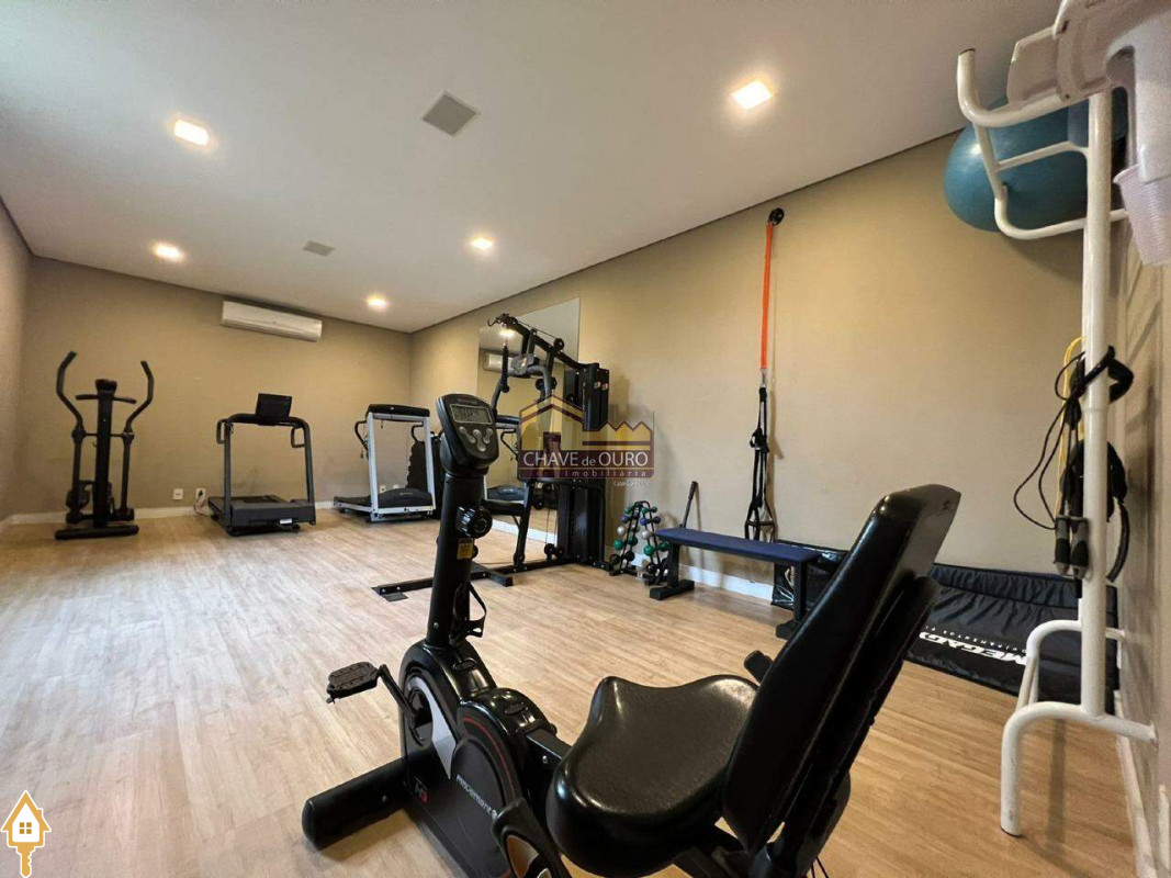 O condomínio oferece uma infraestrutura completa com academia, salão de festas, piscina de raia, piscina infantil, piscina adulta aquecida, sauna, churrasqueira, quadra de futebol e portaria 24 horas, proporcionando conforto e segurança para toda a família.