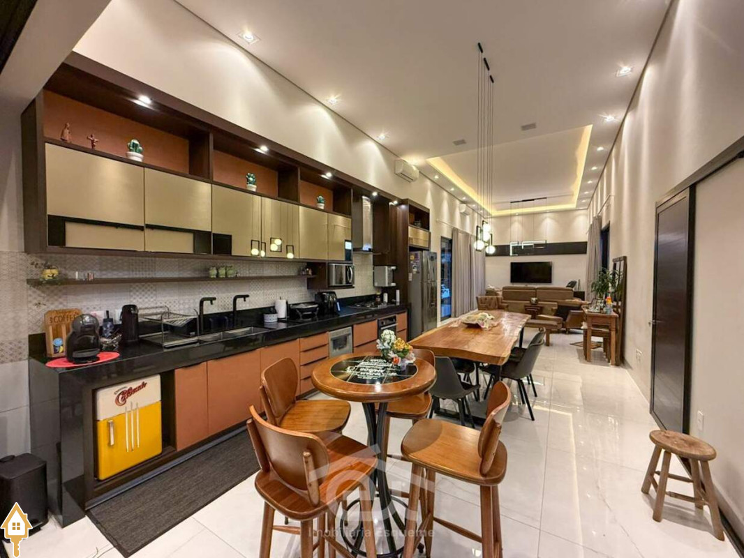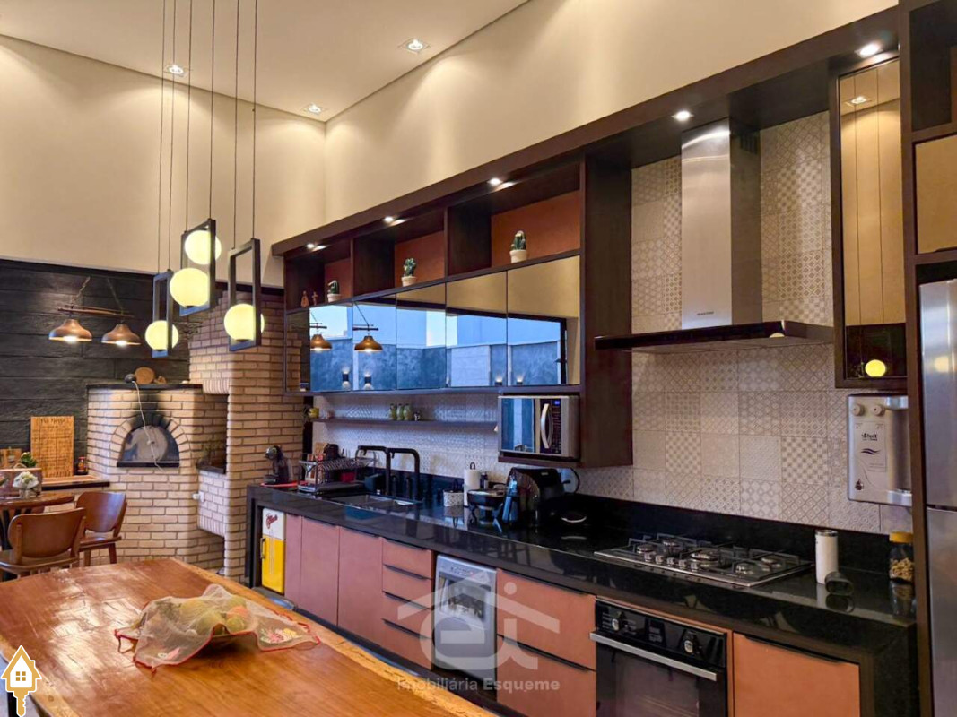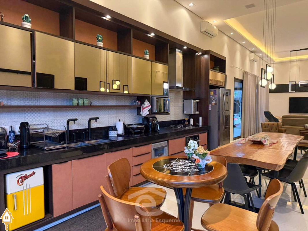 - Ambientes integrados no estilo americano (sala, cozinha e área gourmet)