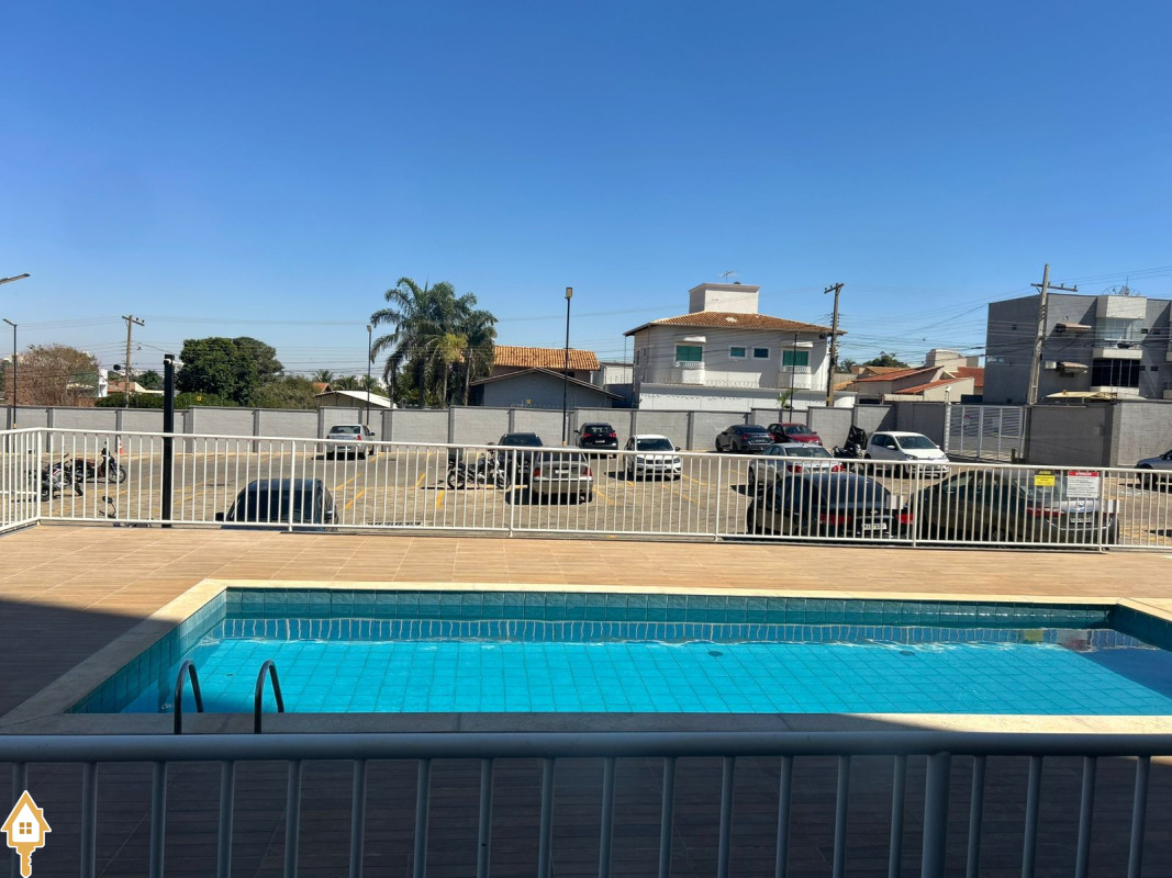 Área de lazer completa com piscina e quadra esportiva