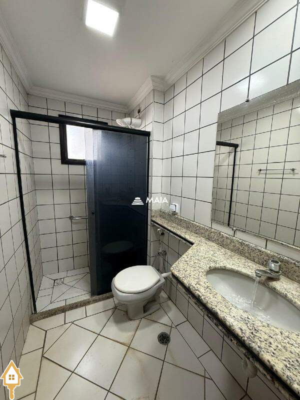 - Banheiro social com box, espelho e armário;