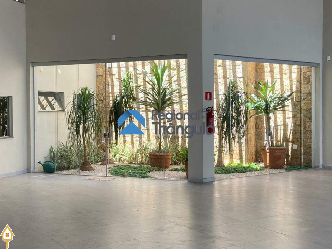 Jardim interno com paisagismo completo e fechamento em blindex com portas de correr
