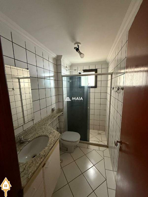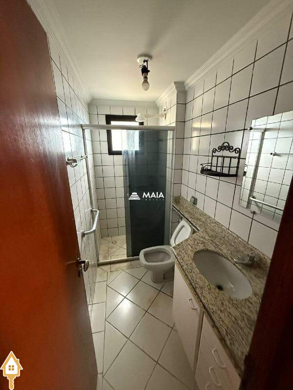 - Banheiro social com box, espelho e armário.