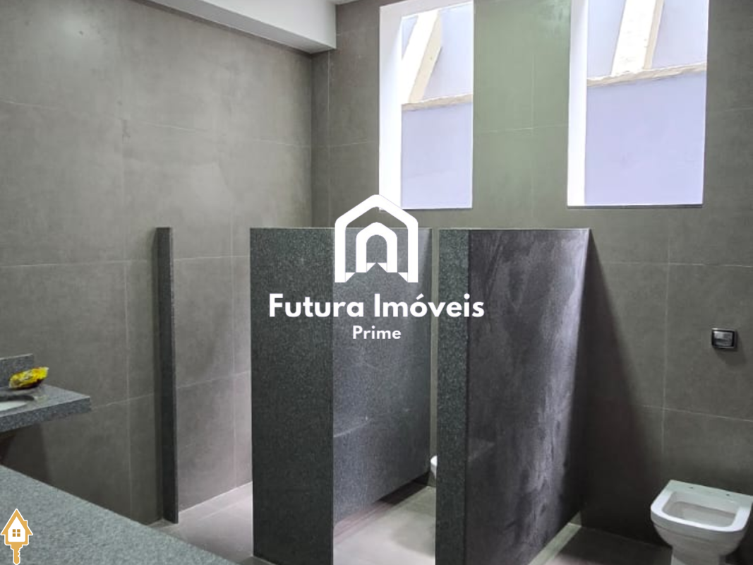 Mezanino com banheiro e com pontos para instalação de ar condicionado.