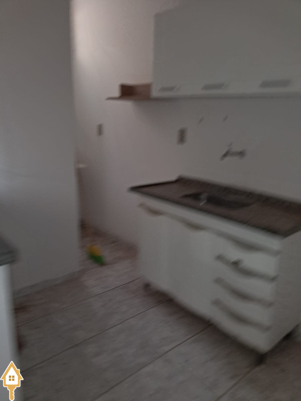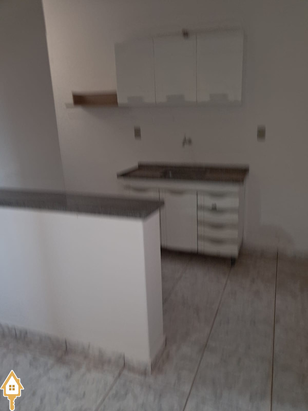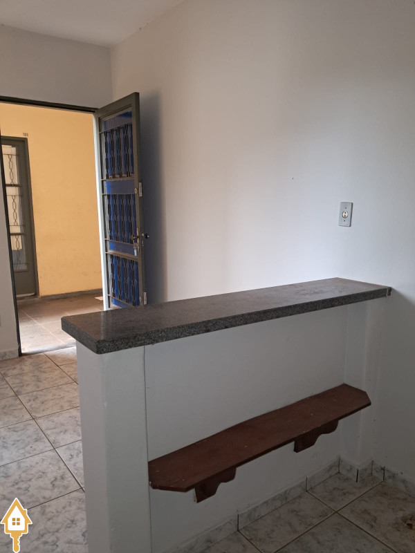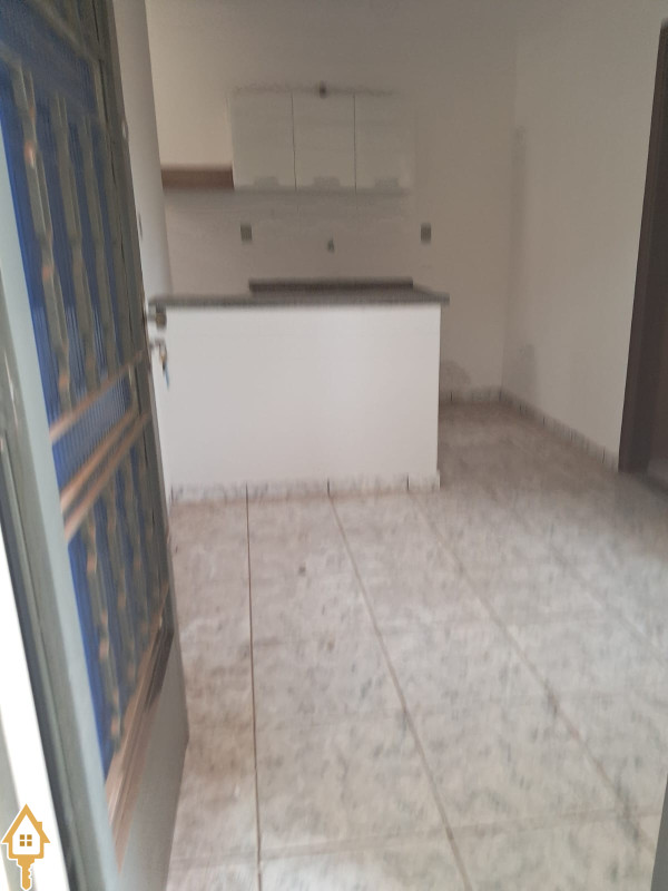 1 sala conjugada com a cozinha uma bancada e armários