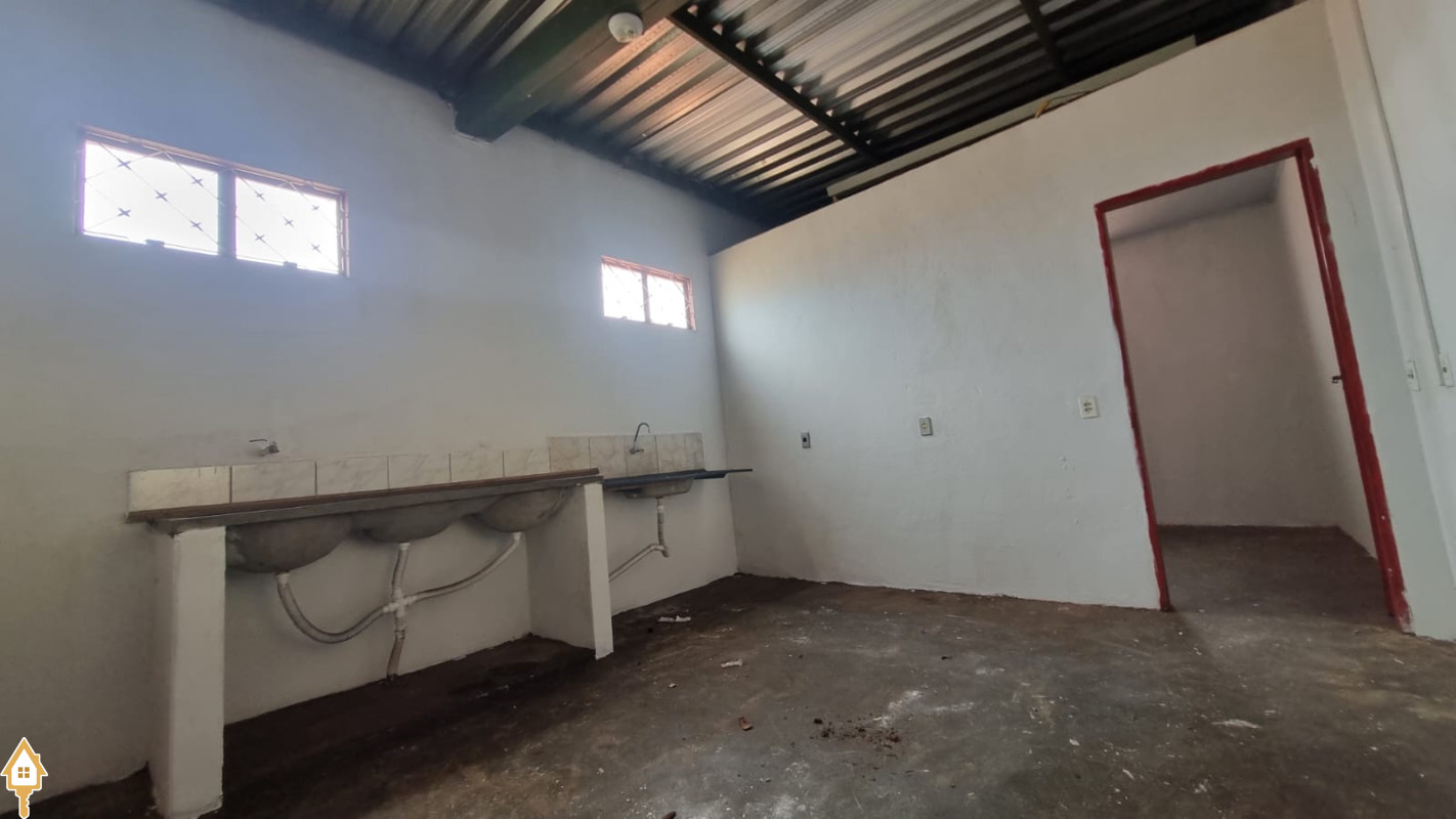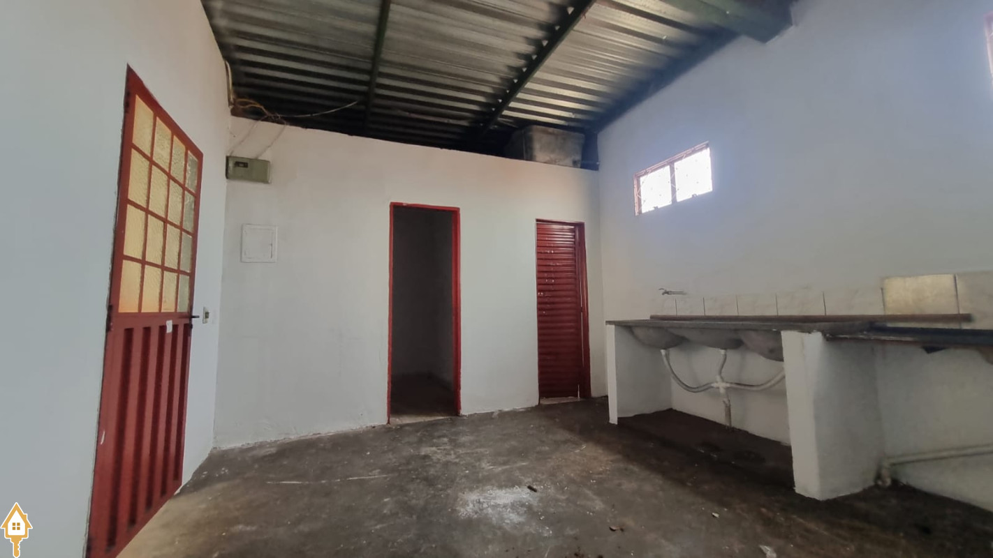 UMA ÁREA COMERCIAL COM O2 ESCRITÓRIOS NO FUNDO, COZINHA E BANHEIRO E VARANDA.