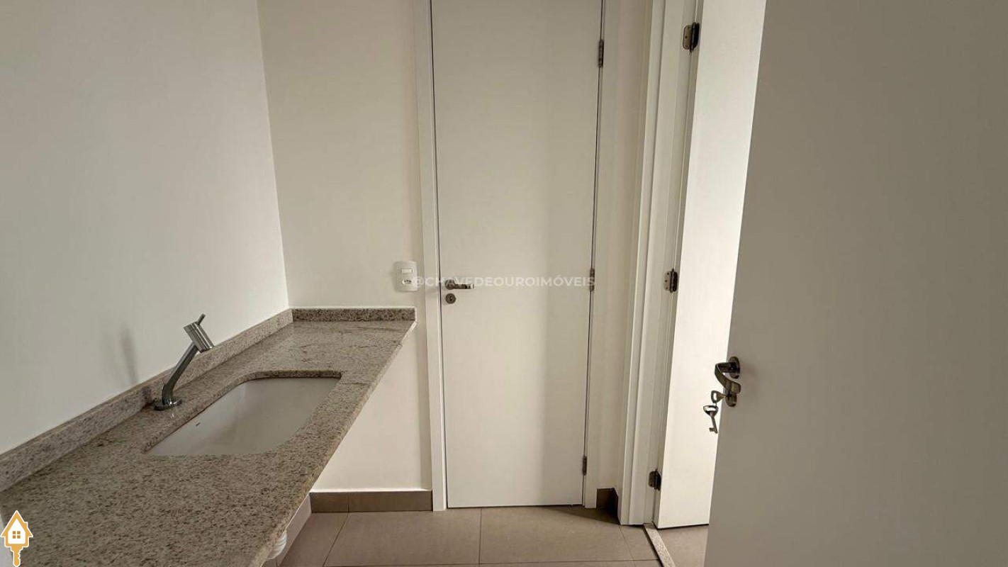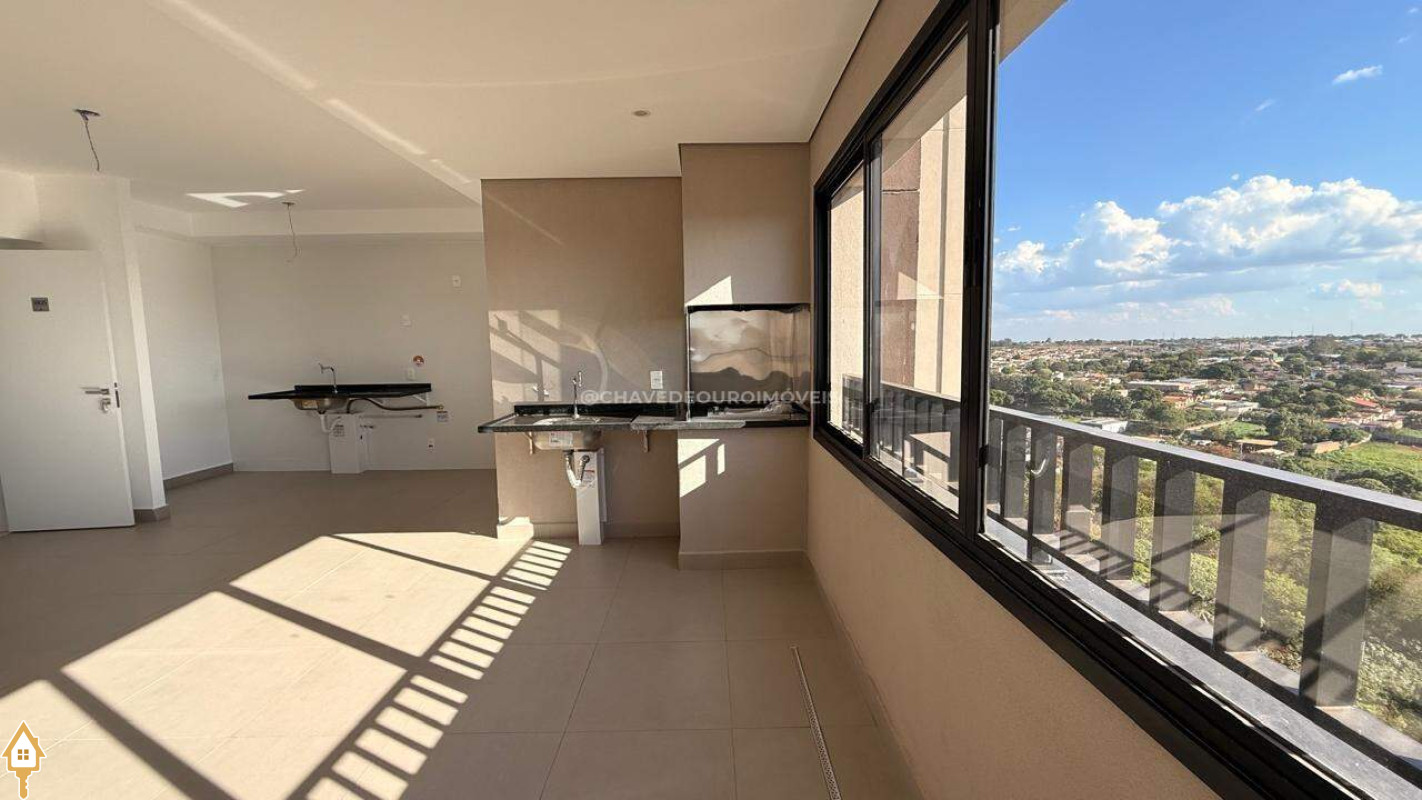 Apartamento para locação localizado no bairro Parque do Mirante em Uberaba, MG. Composto de três suítes, sendo duas no modelo canadense. Dispõe de três banheiros, ambiente Social com sala, varanda gourmet, área privativa e duas vagas de garagem.