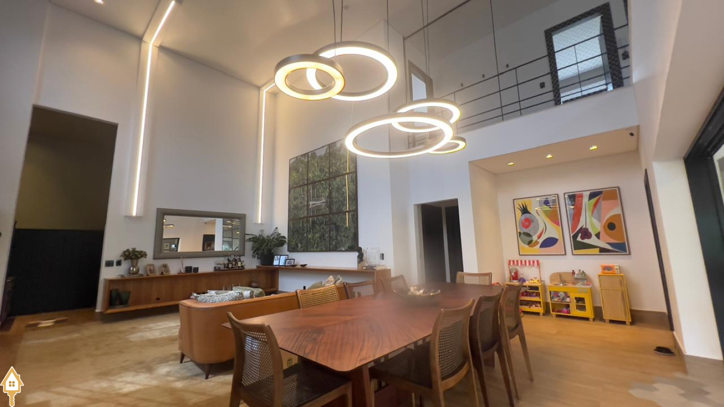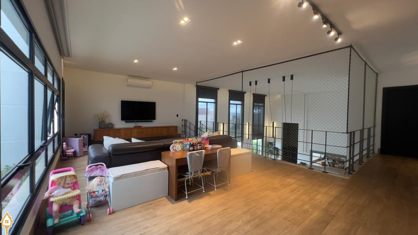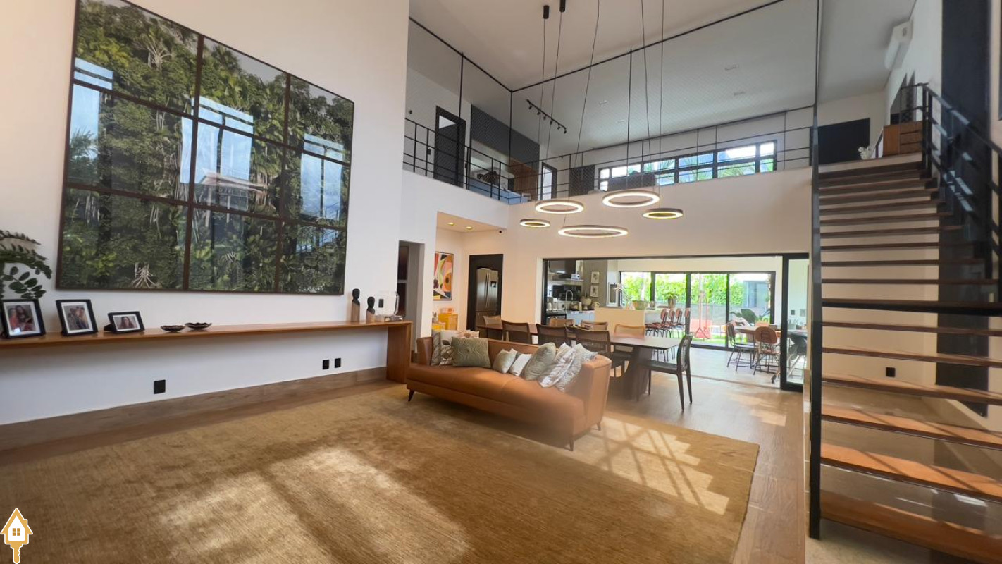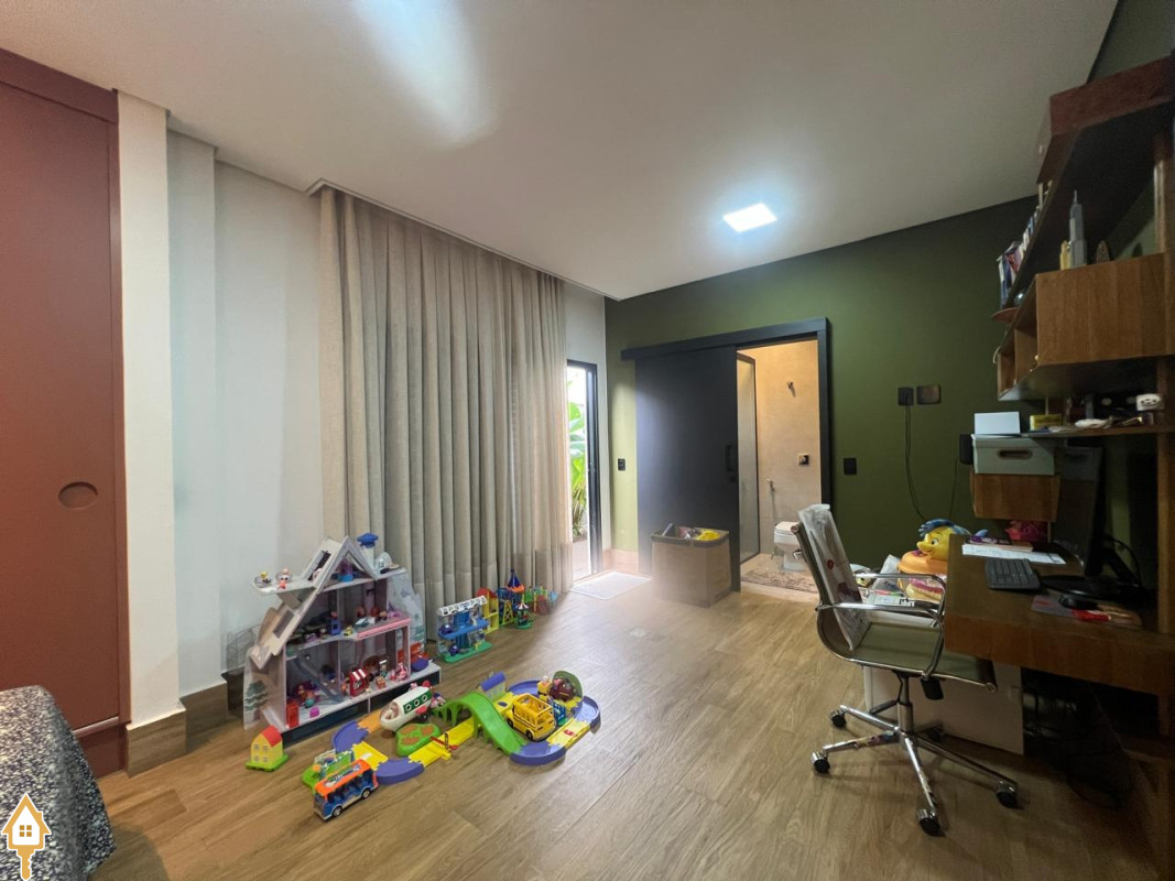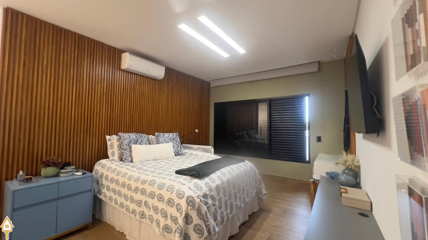 Casa localizada no Condomínio Cyrela em Uberaba, MG. Composta por dois pavimentos, no piso superior três suítes, sendo uma máster com banheira e todas com sistema de aquecimento solar e climatizadas, sala de televisão e lavabo. No piso inferior, sala para três ambientes com pé direito duplo, lavabo, uma suíte reversível, cozinha planejada, despensa, varanda gourmet com churrasqueira, balcão e chopeira, piscina aquecida com gerador de cloro e gerador de ozônio, sauna a vapor, deck em madeira cumaru, ducha, jardim, área de serviço planejada e garagem para quatro veículos. Obs: possui também o sistema de geração própria de energia através de placas fotovoltaicas e elevador.