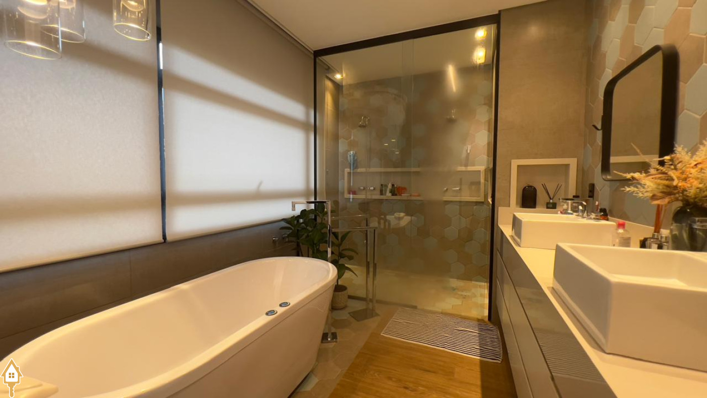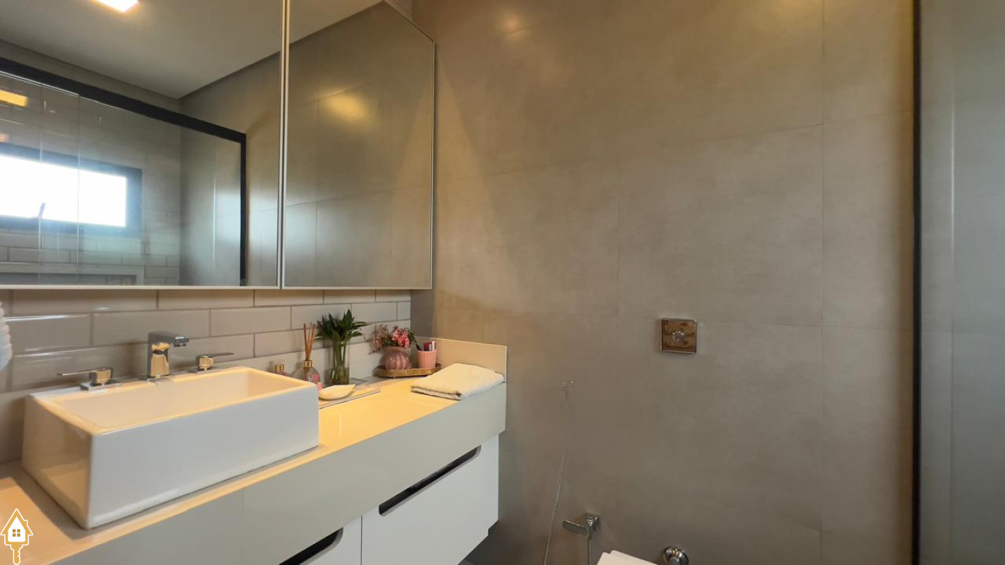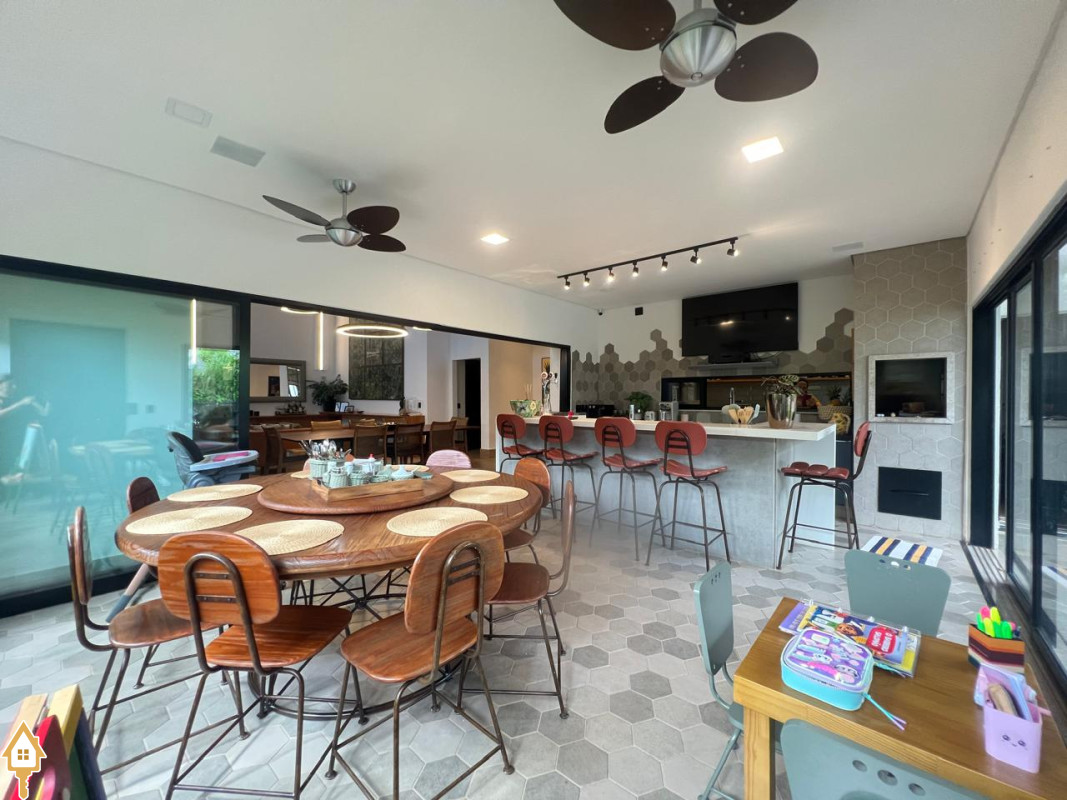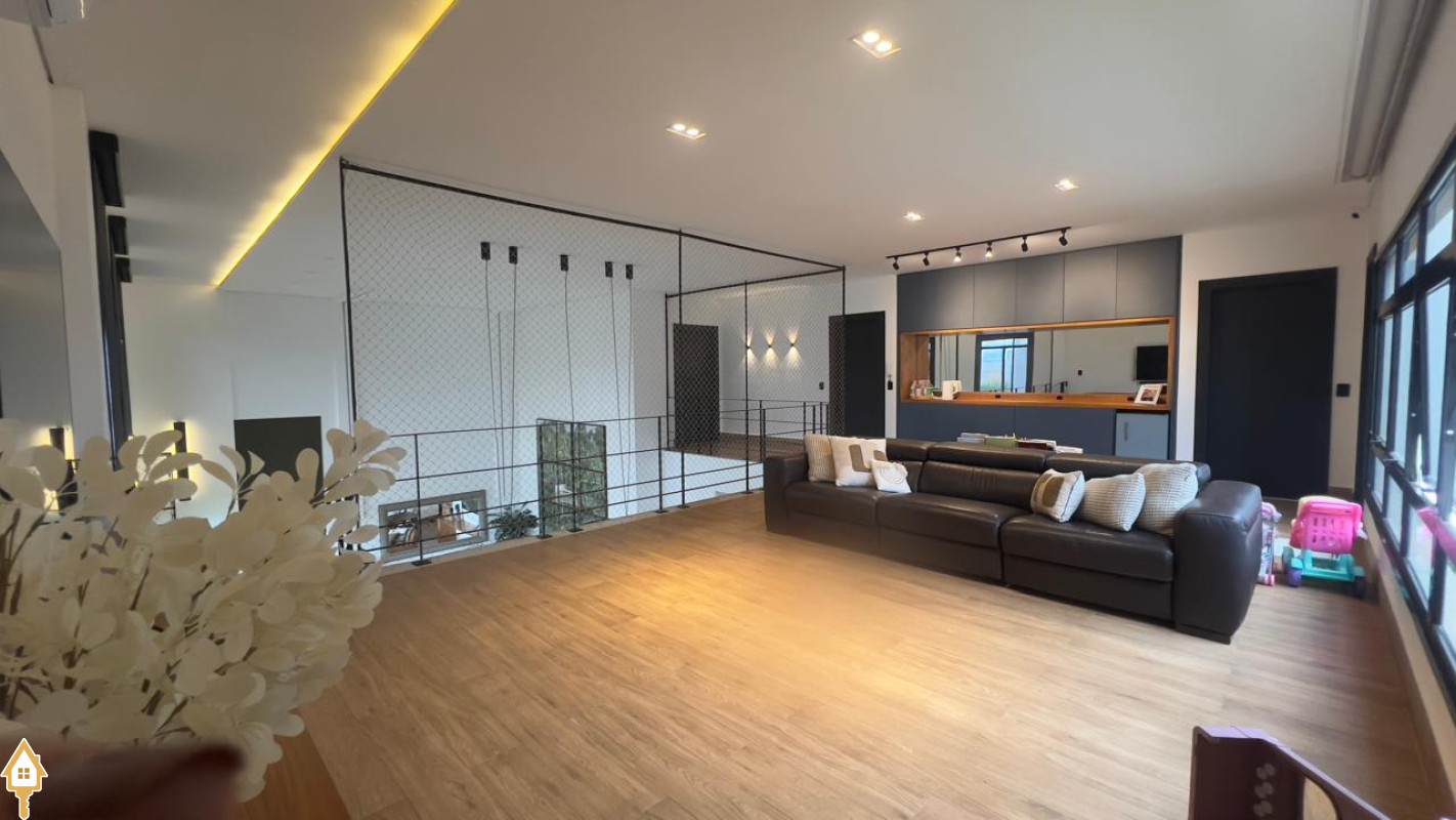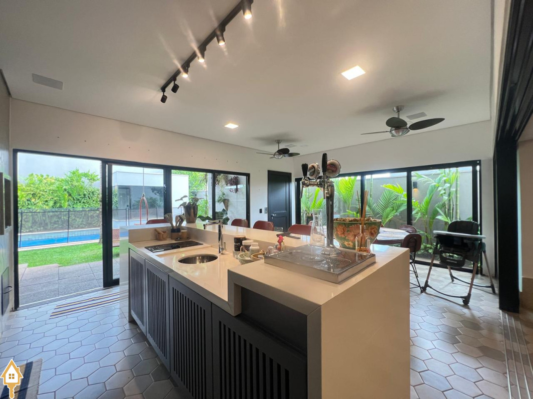 Casa localizada no Condomínio Cyrela em Uberaba, MG. Composta por dois pavimentos, no piso superior três suítes, sendo uma máster com banheira e todas com sistema de aquecimento solar e climatizadas, sala de televisão e lavabo. No piso inferior, sala para três ambientes com pé direito duplo, lavabo, uma suíte reversível, cozinha planejada, despensa, varanda gourmet com churrasqueira, balcão e chopeira, piscina aquecida com gerador de cloro e gerador de ozônio, sauna a vapor, deck em madeira cumaru, ducha, jardim, área de serviço planejada e garagem para quatro veículos. Obs: possui também o sistema de geração própria de energia através de placas fotovoltaicas e elevador.