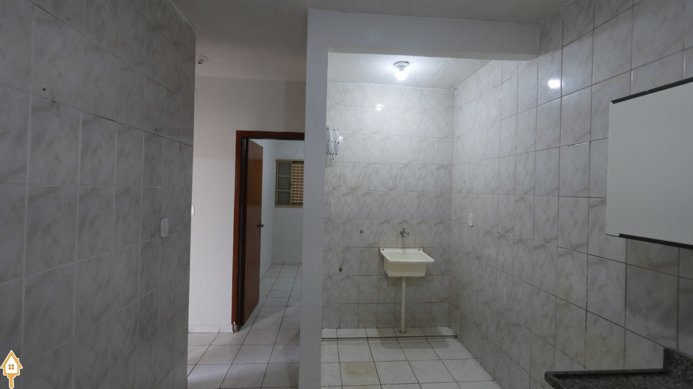 Dois quartos, banheiro social, sala, sacada, cozinha com área de serviço, garagem coberta. 50 m