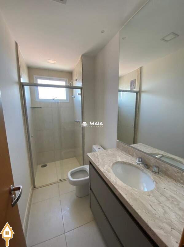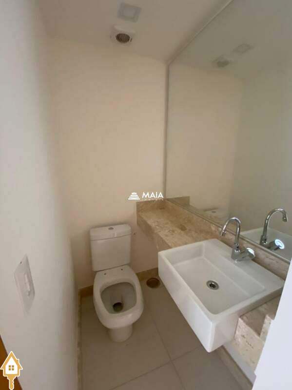 - banheiro social com armário, box em blindex e espelho