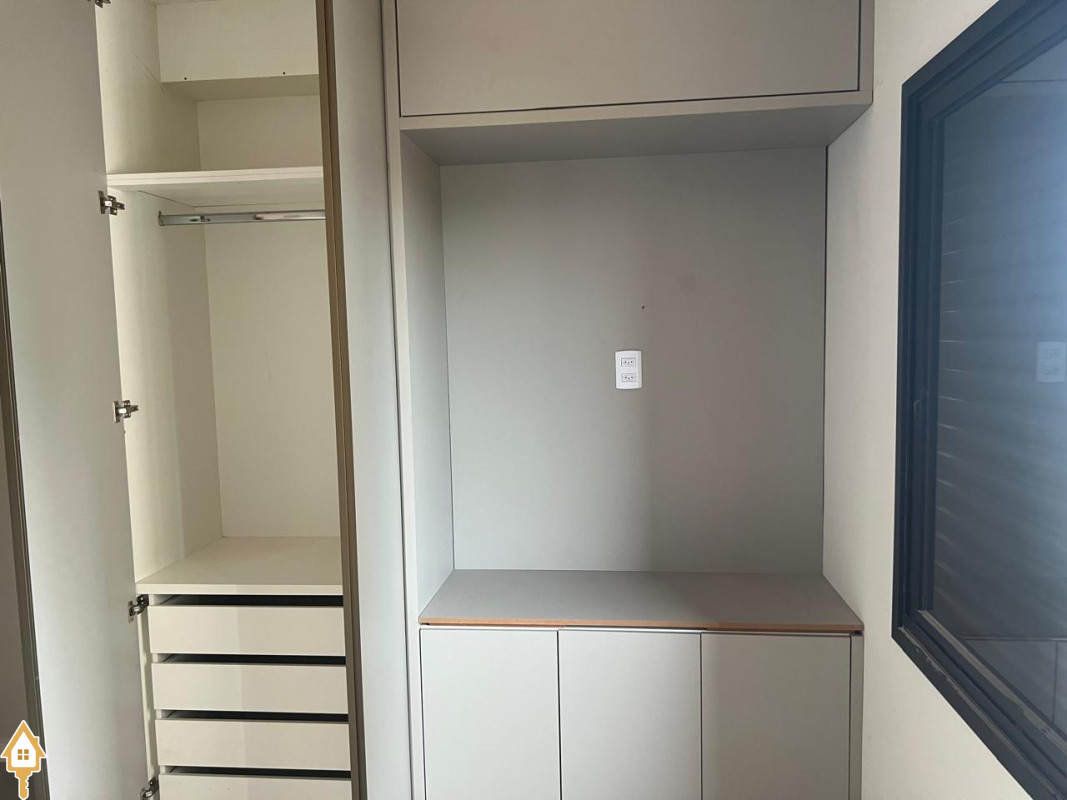 O apartamento conta ainda com roupeiros e armários planejados por toda sua extensão, além de um condomínio completo, com piscina e portaria.