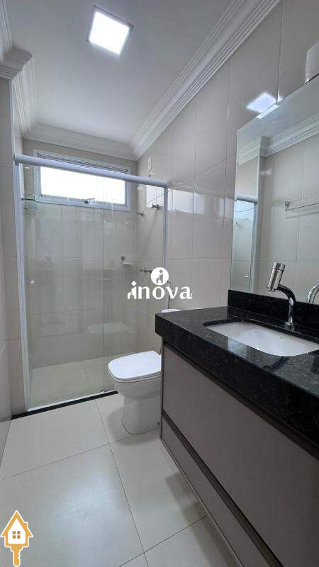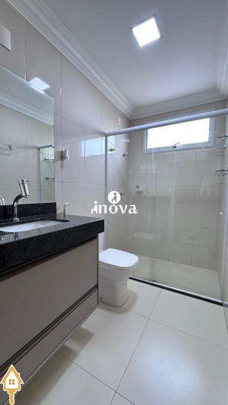 - Banheiro social com armário, box e espelho;