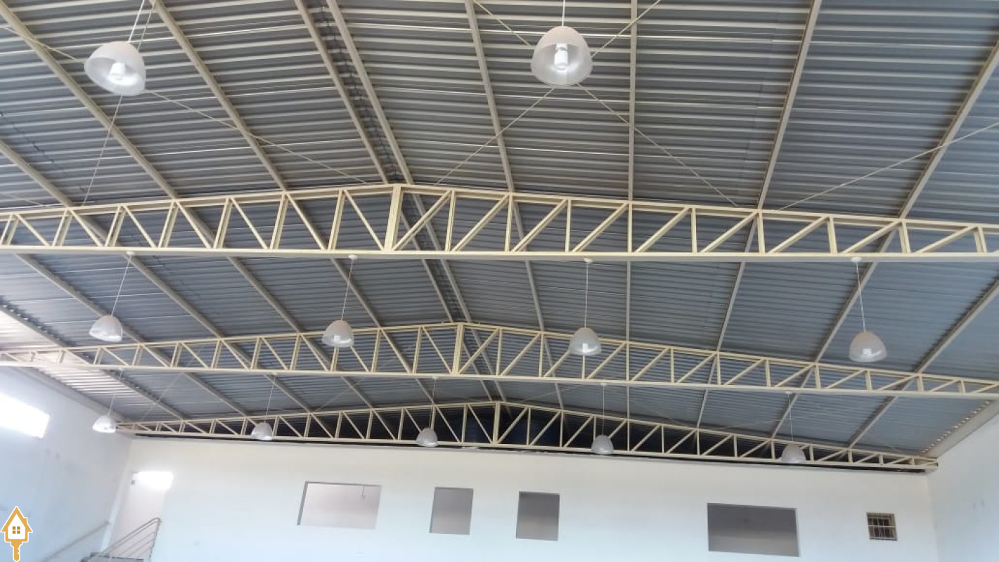 580m², com pé direito alto. Portas de aço, estrutura metálica, mezanino,