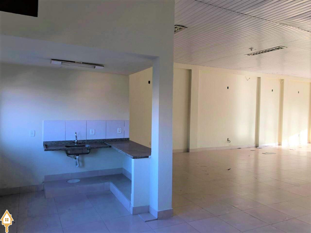 - Salão amplo, sem vigas, teto com forro em PVC e telhas sanduíche;