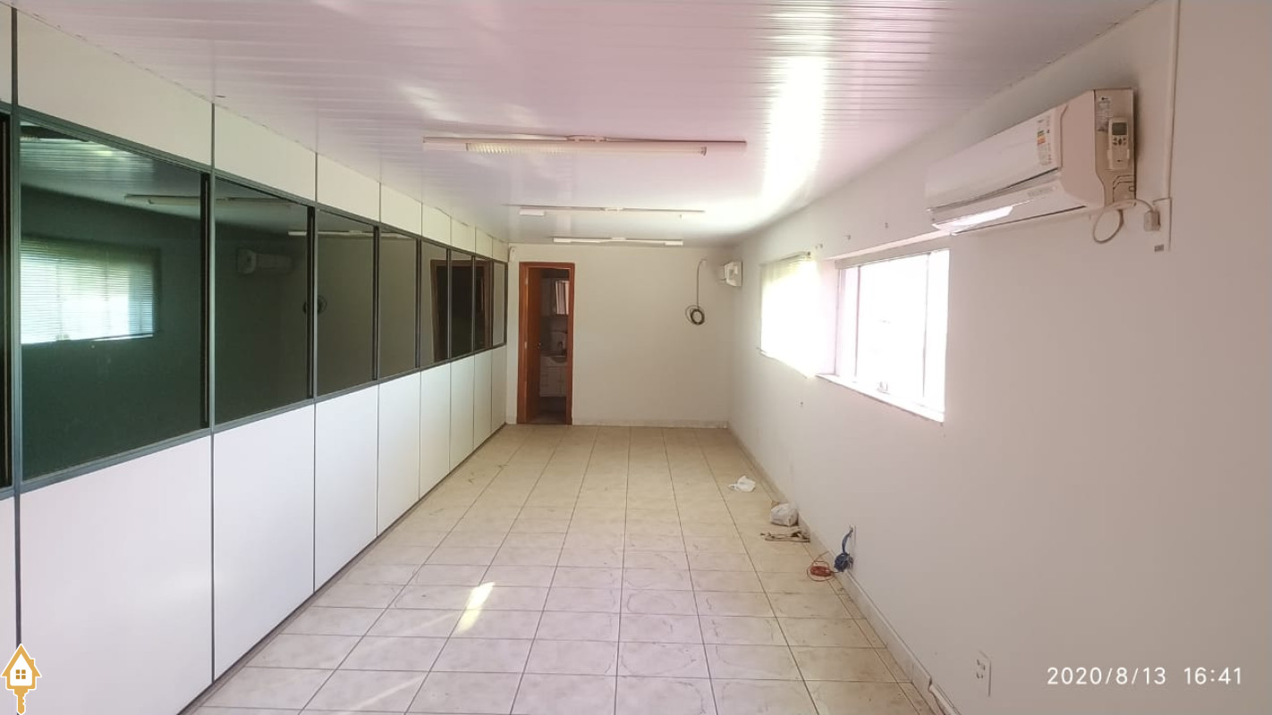 GALPÃO AMPLO, COM ÁREA DE 450m² DE SALÃO, CONTENDO COZINHA E UM BANHEIRO COMPLETO E 69m² DE ÁREA SUPERIOR, SENDO ESCRITÓRIO COM BANHEIRO COMPLETO, BOX NA ÁREA DO CHUVEIRO. POSSUI JANELAS DE BLINDEX E DOIS ARES CONDICIONADOS.