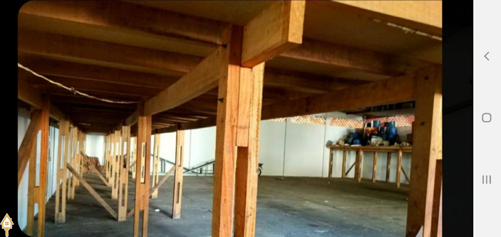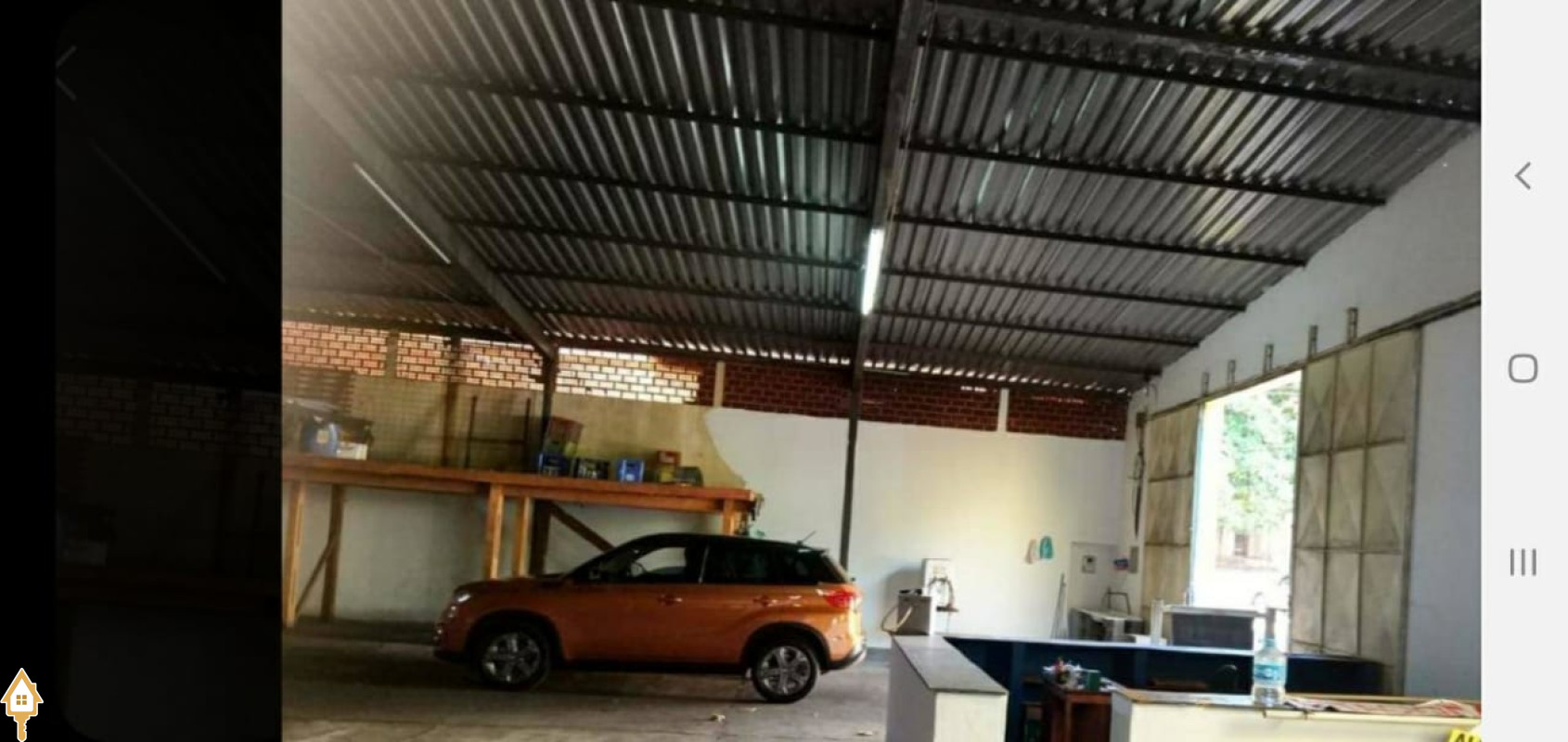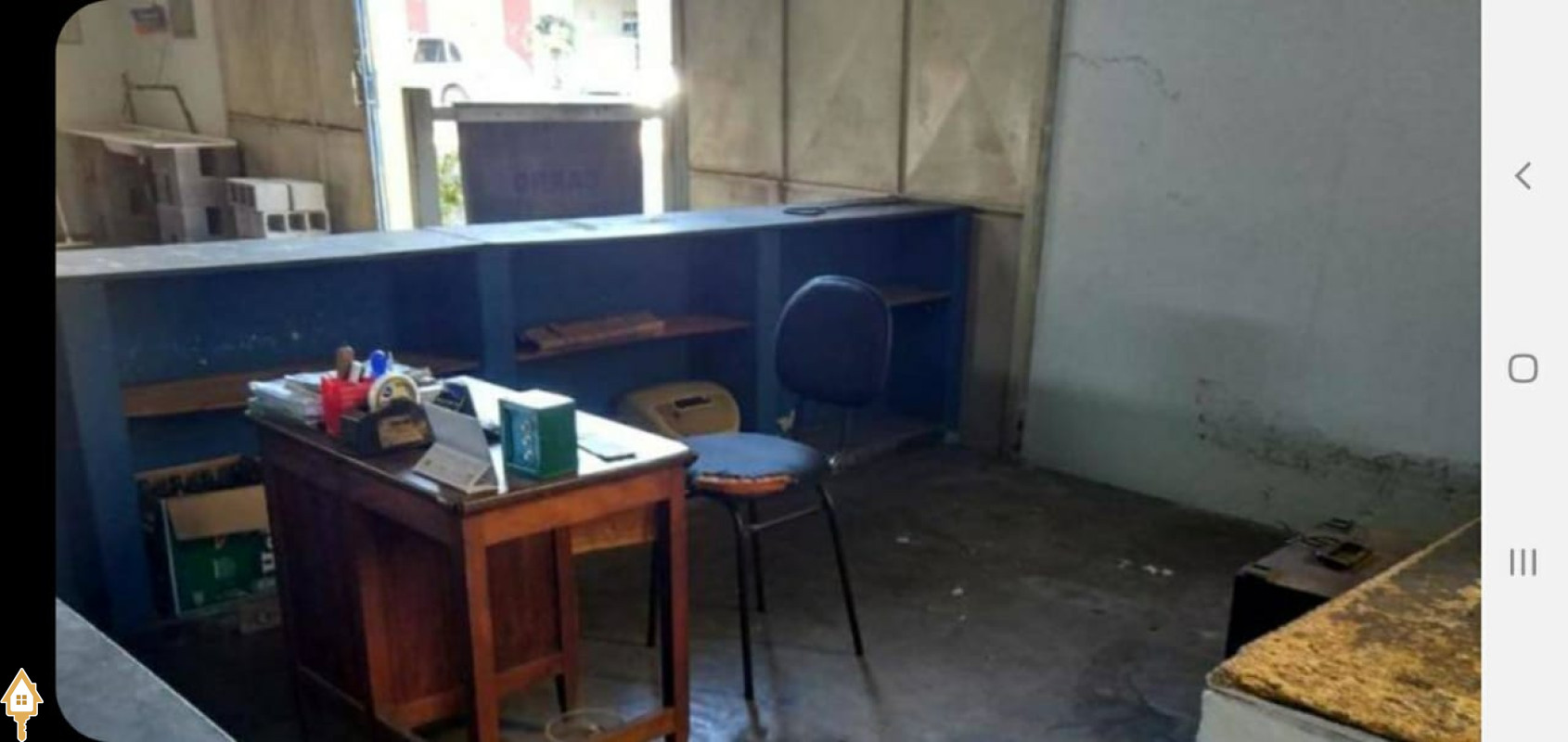 Galpão de 500 metros quadrados, com: Escritório, Mezanino, Banheiros, Cozinha e Estacionamento.