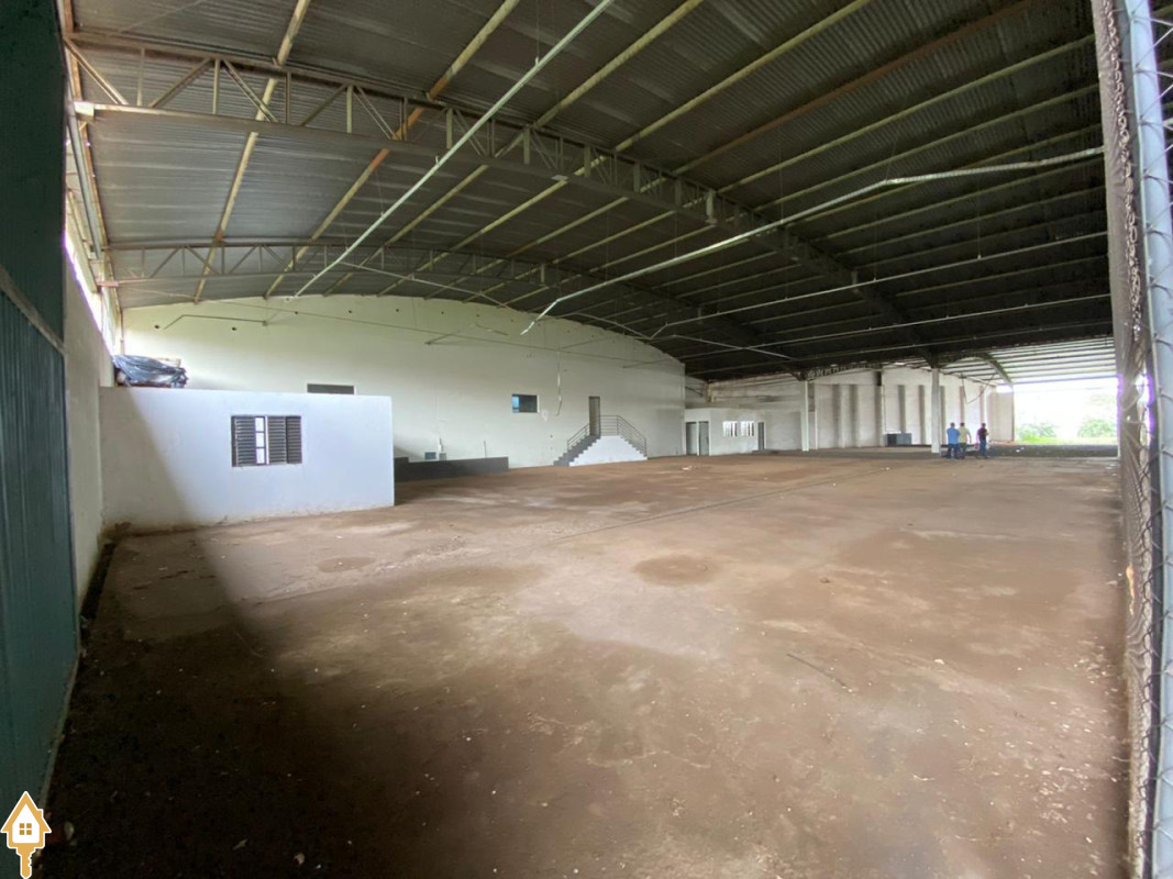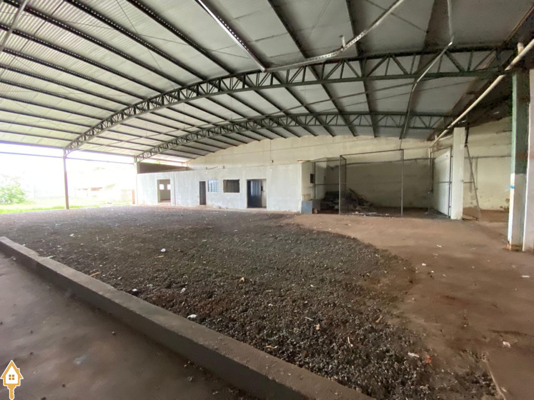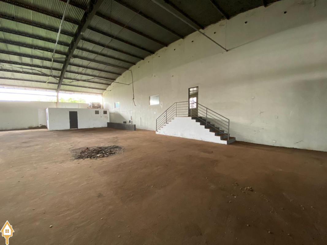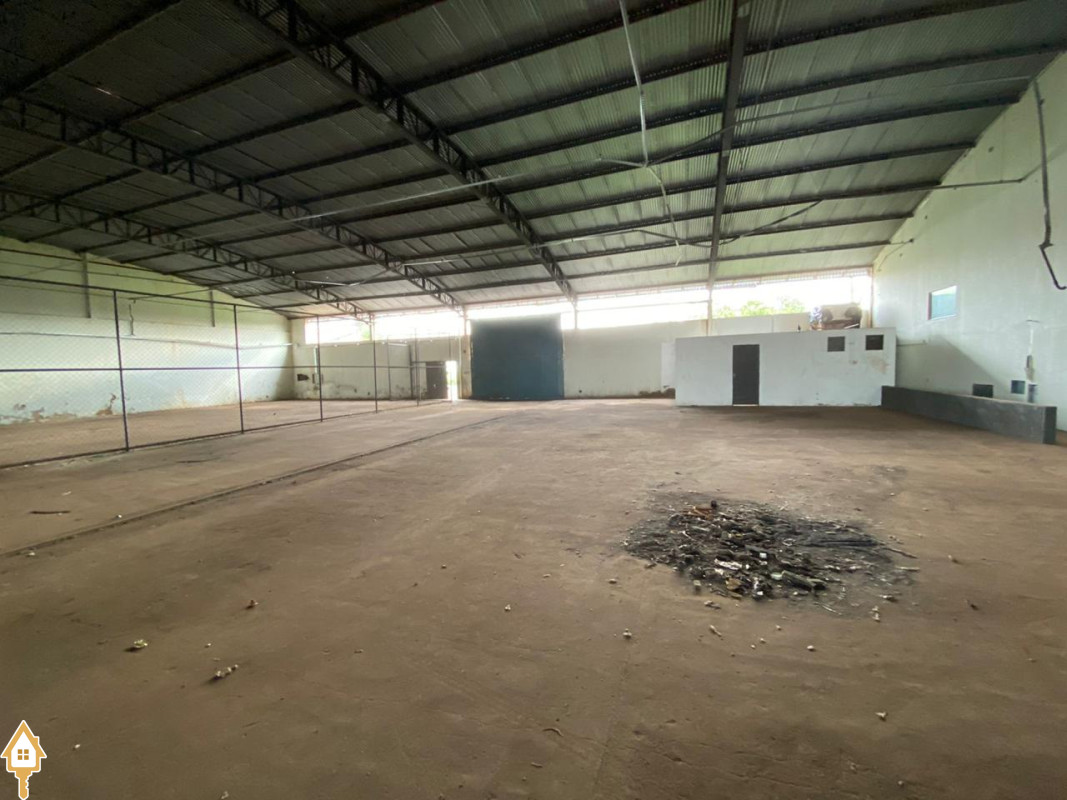 1800 Metros Quadrados,5,5 metros de pé direito, Área Administrativa de 300 metros quadrados,100 metros quadrados para a Avenida Santana Borges, Banheiros, Cozinha, Escritórios.