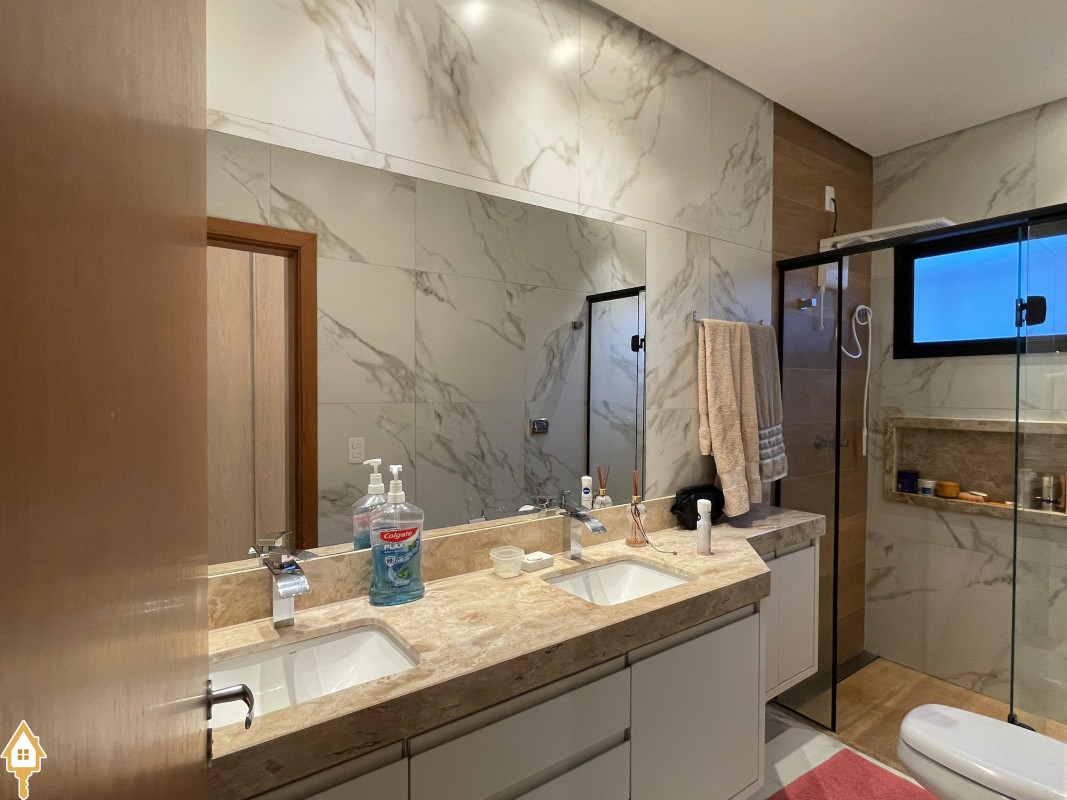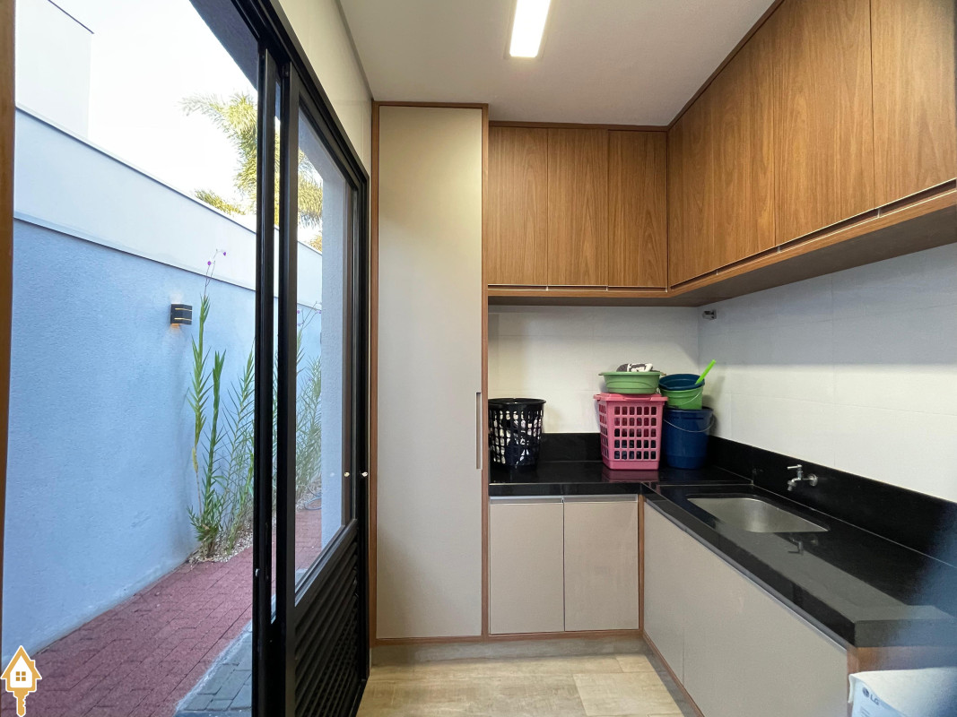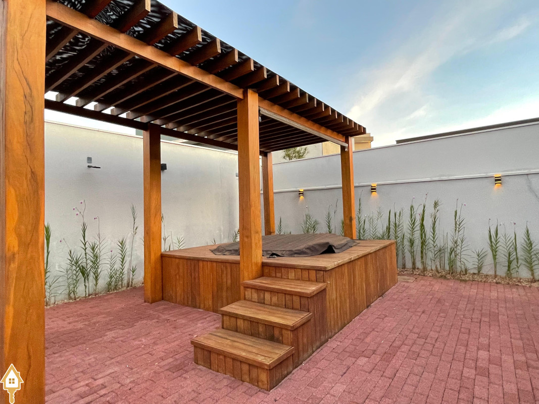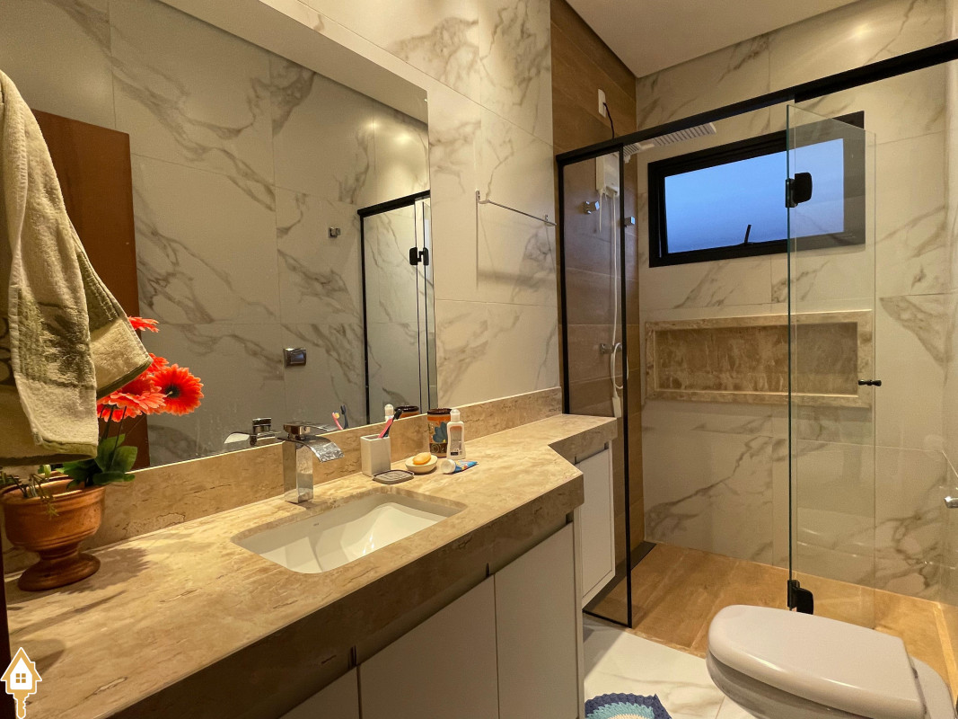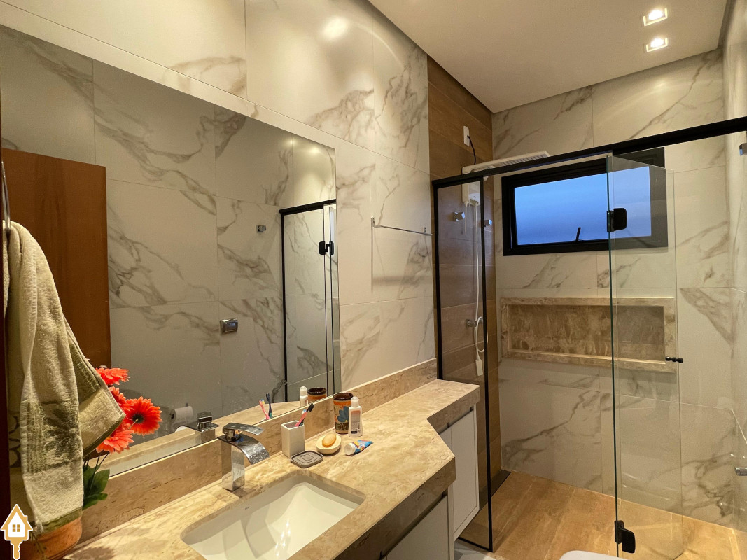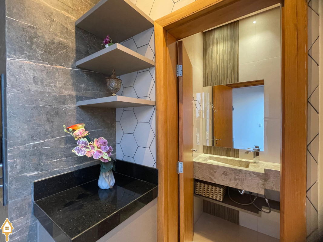 Casa térrea com 3 quartos, sendo duas suítes, a Master com espaçoso closet. Todos os quartos ricos em armários e com ar condicionado. Sala ampla 3 ambientes, com pé direito alto, toda planejada e com ar condicionado. Varanda gourmet com churrasqueira e planejados. Cozinha com cooktop, coifa, forno, rica em planejados. Escritório planejado e com ar. Lavabo decorado. Quintal amplo com banheira de hidromassagem, deck e pergolado. Sistema de irrigação. Estrutura preparada para agua quente.